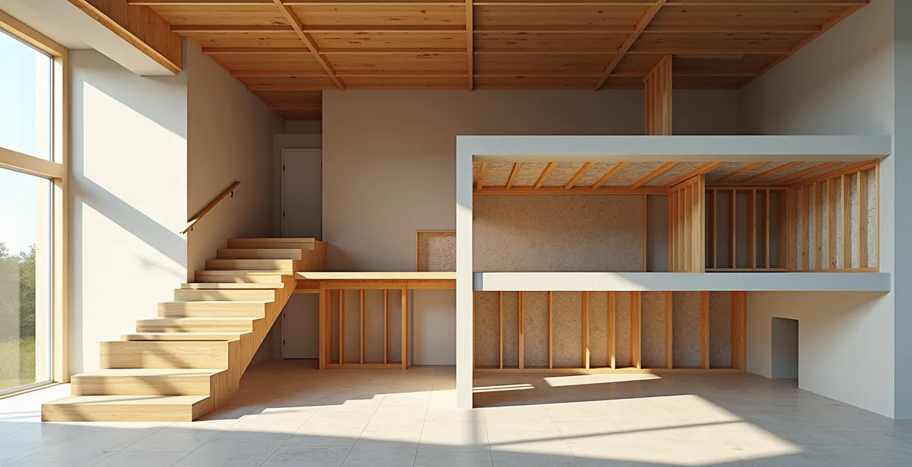 La véritable qualité d’un espace multi-niveaux se niche dans la performance de l’entre-deux : le plancher intermédiaire. Trop souvent perçu comme un simple élément structurel, il est en réalité une membrane active, un régulateur de l’écosystème familial. Si la clé du confort n’était pas dans la séparation visible des murs, mais dans la performance invisible des planchers ? Cette approche change tout. Elle nous invite à penser la séparation des niveaux non plus comme une barrière, mais comme un filtre intelligent qui gère les flux : le son, la chaleur, la lumière et, bien sûr, les personnes.