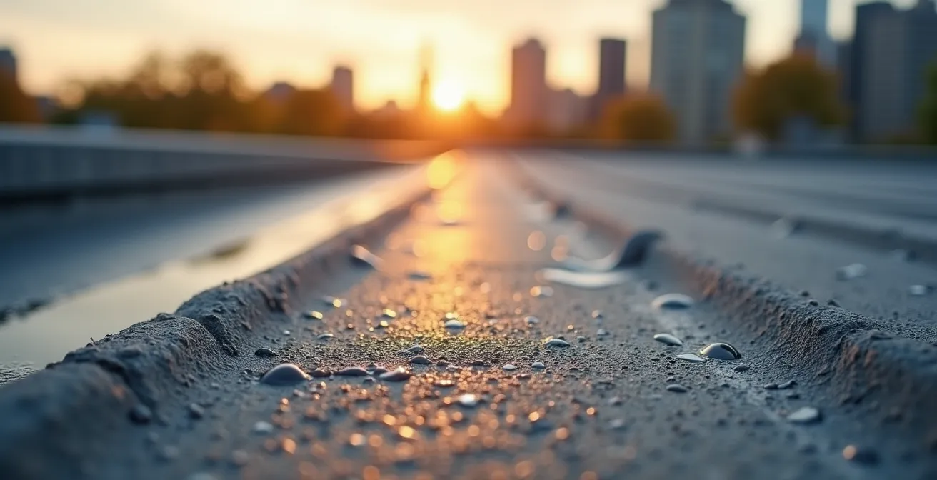 Le deuxième facteur de vieillissement accéléré provient des cycles thermiques extrêmes caractéristiques du climat québécois. La membrane subit des contractions et expansions répétées lors des transitions gel-dégel. Chaque cycle impose des contraintes mécaniques sur la structure du matériau, créant une fatigue cumulative comparable à celle qu’on observe sur les métaux soumis à des flexions répétées. Au Québec, l’amplitude de ce phénomène atteint des proportions remarquables, avec jusqu’à 150 cycles gel-dégel par an dans la vallée du Saint-Laurent.